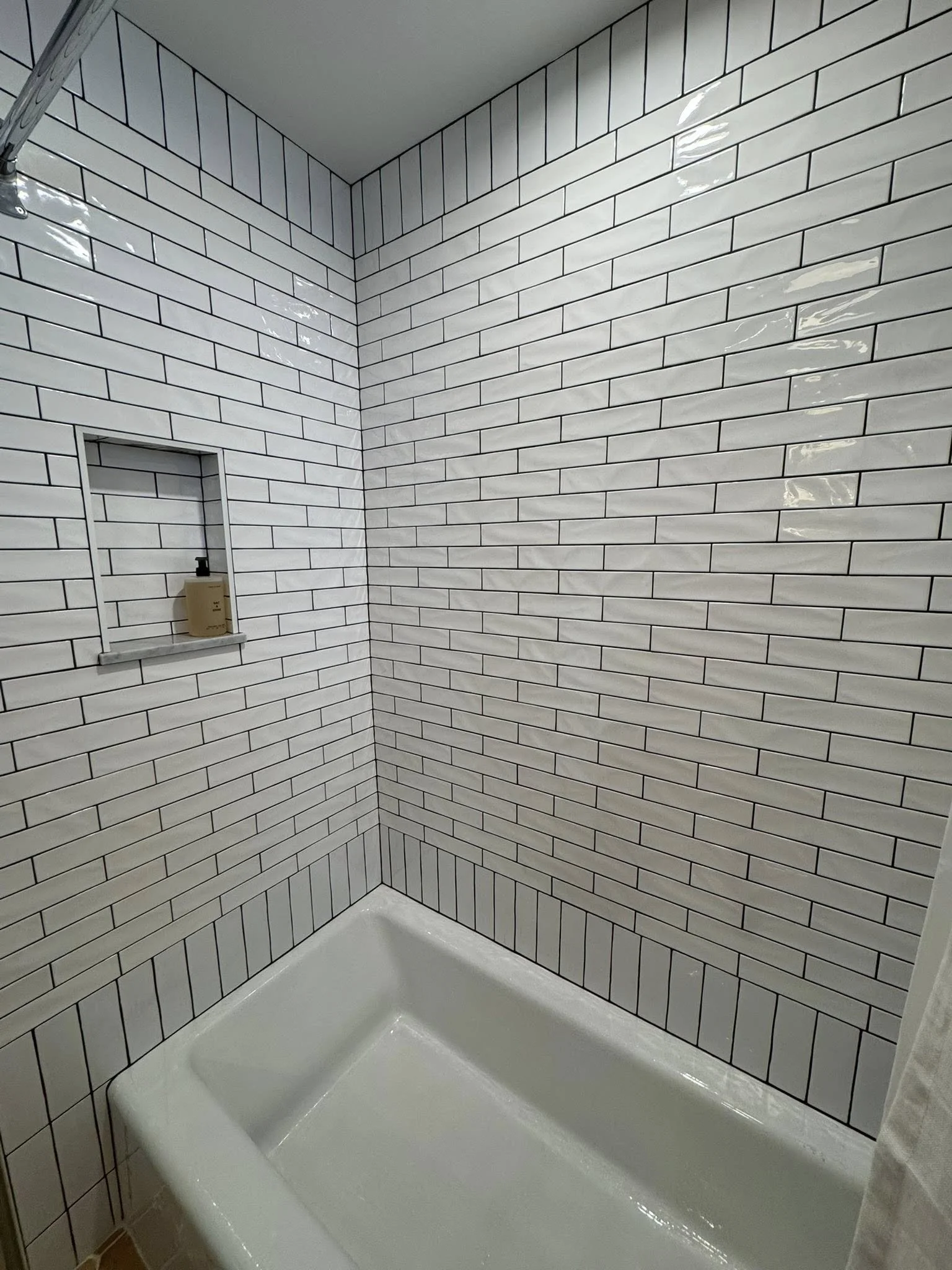 We just finished a stunning bathroom renovation! This full gut renovation showcased a unique tub design, blending modern elegance with functional beauty. The space has been completely reimagined, featuring exquisite tile work, stylish fixtures, and a soothing color palette.
